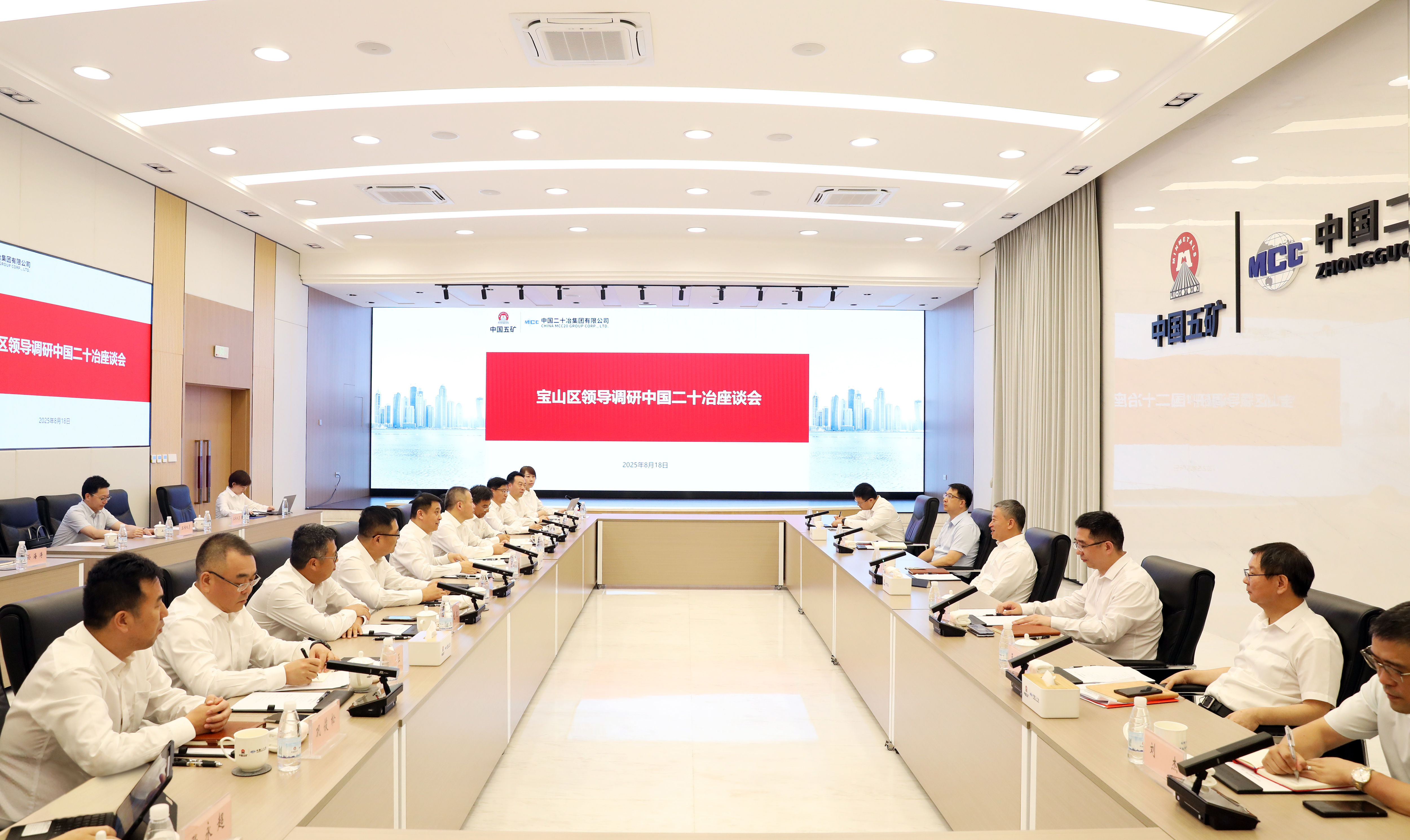 8月18日,寶山區(qū)委書(shū)記李晨昊一行到中國(guó)二十冶調(diào)研交流。中國(guó)二十冶黨委書(shū)記、董事長(zhǎng)徐立和領(lǐng)導(dǎo)班子成員熱情接待,雙方圍繞深化政企合作、推動(dòng)區(qū)域高質(zhì)量發(fā)展進(jìn)行交流。